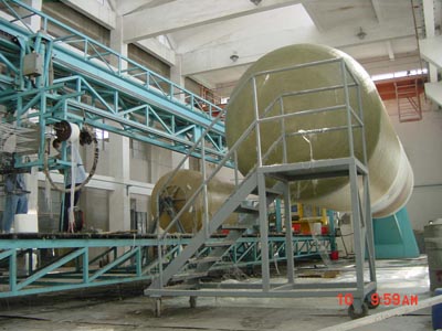 為了滿足市場對我司的供應(yīng)產(chǎn)品的需求,1990年,固肽玻璃鋼有限公司引進(jìn)美國Venus公司全微機(jī)控制玻璃鋼貯罐生產(chǎn)線。這是一條集制襯和纏繞于一體的自動玻璃鋼貯罐生產(chǎn)設(shè)備。目前,由于車間空間的限制,在車間內(nèi)可以制作直徑4.5米以下的玻璃鋼貯罐。也可以在車間外制作直徑25米以下的玻璃鋼貯罐。