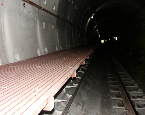 工作準備充分后,邀請了廣州地鐵建設總部相關人員2008年8月15日—17日在株洲進行了型式試驗,并得到了肯定,并于2008年8月17日正式出具了合格的檢驗報告。應廣州地鐵建設總部要求,特補充了地下隧道現(xiàn)場模擬安裝4米長一段進行負載試驗,于8月31日進行完畢。