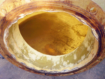 儲罐整體采用有限元技術(shù)設(shè)計,通過微機全控制實現(xiàn)制作,罐身壁厚由上至下逐漸增厚。整體質(zhì)量非常穩(wěn)定。 受人為的因素影響較大,鋪層厚度不一,整體穩(wěn)定差,存在很大的安全隱患。 |